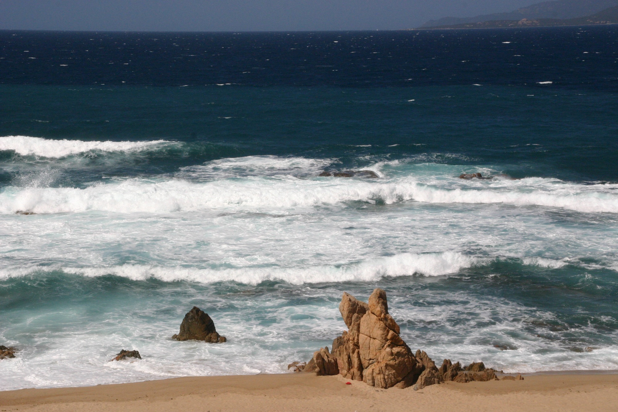 Wandelen zo’n 5 kilometer naar andere baai bij windkracht 7. (Terug toch maar met de taxi.)