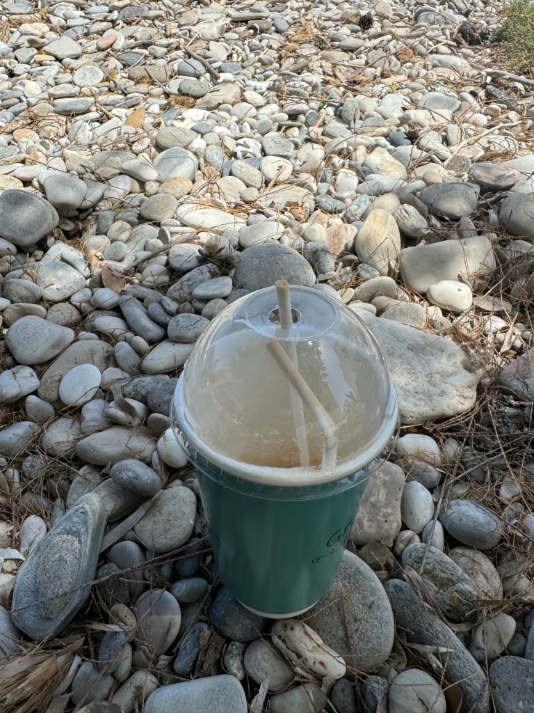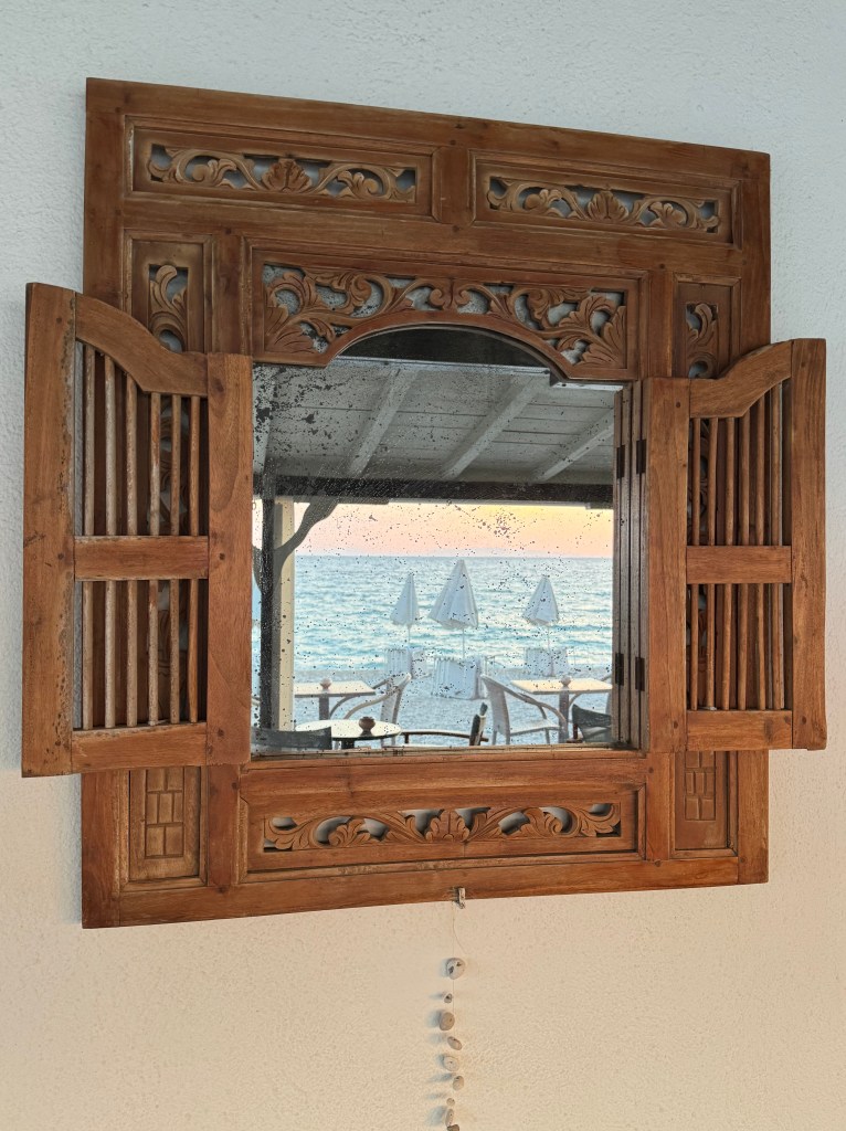 op een terras aan zee