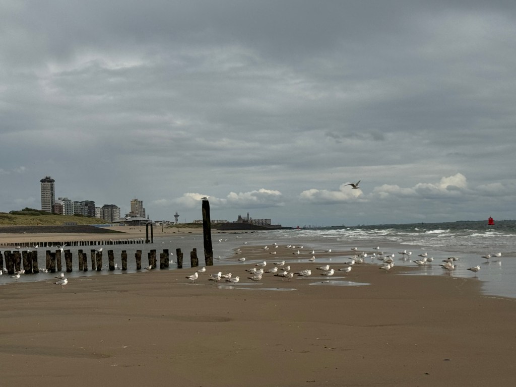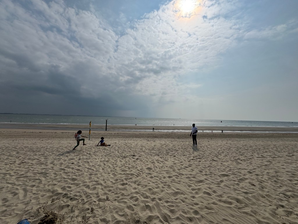 Lekker uitwaaien de volgende dag met de jongens op een mooie strandwandeling heen door de duinen, terug over het ebstrand naar Dishoek.